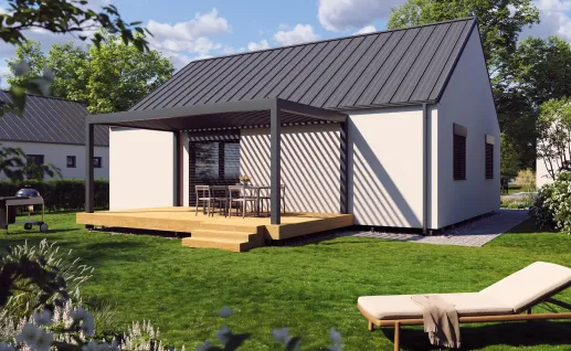 Zwei intelligent verbundene Module schaffen großzügige Wohn- oder Arbeitsflächen mit einer Größe von 80 bis 150 m². Ideal für alle, die ein komfortables und gleichzeitig flexibles Zuhause suchen – oder Raum für geschäftliche Zwecke benötigen.