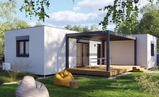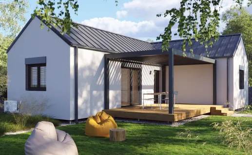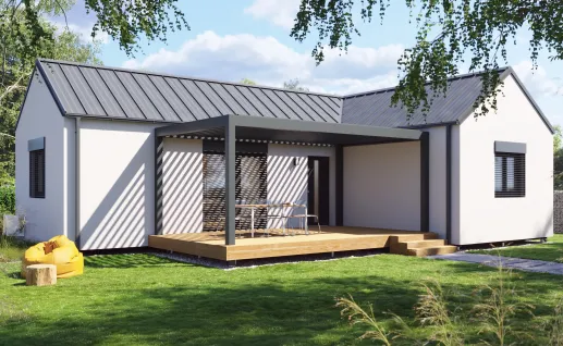 Ob als gemütlicher Innenhof, geschützter Garten oder multifunktionale Terrasse – die Anordnung der Räume lädt dazu ein, den Außenbereich als natürlichen Bestandteil des Lebensraums zu nutzen. Gleichzeitig lässt sich das Gebäude flexibel an unterschiedlichste Grundstücksformen anpassen.