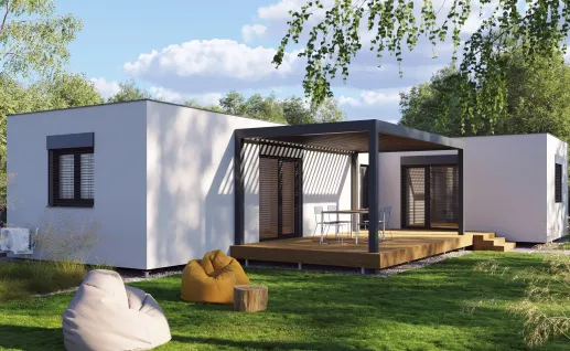 Diese besondere Modulform schafft nicht nur großzügige Flächen, sondern eröffnet auch neue Perspektiven für Architektur und Raumaufteilung. Die L-Form ermöglicht eine klare Trennung einzelner Wohn- oder Funktionsbereiche und sorgt damit für mehr Privatsphäre und Struktur im Alltag.