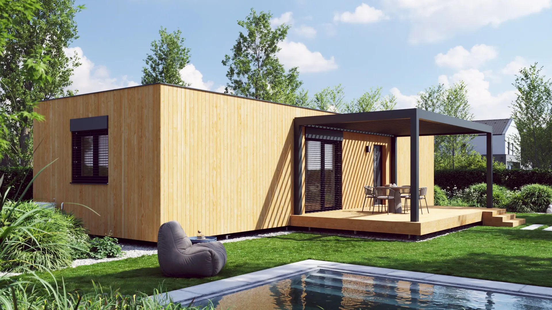 Einzelmodul Holzfassade 75m²-Flachdach