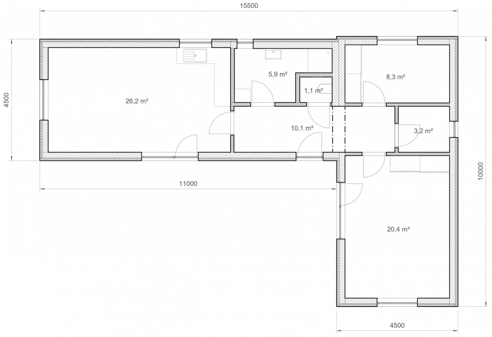 Zweimodulige L Holzfassade 94 m²-Flachdach