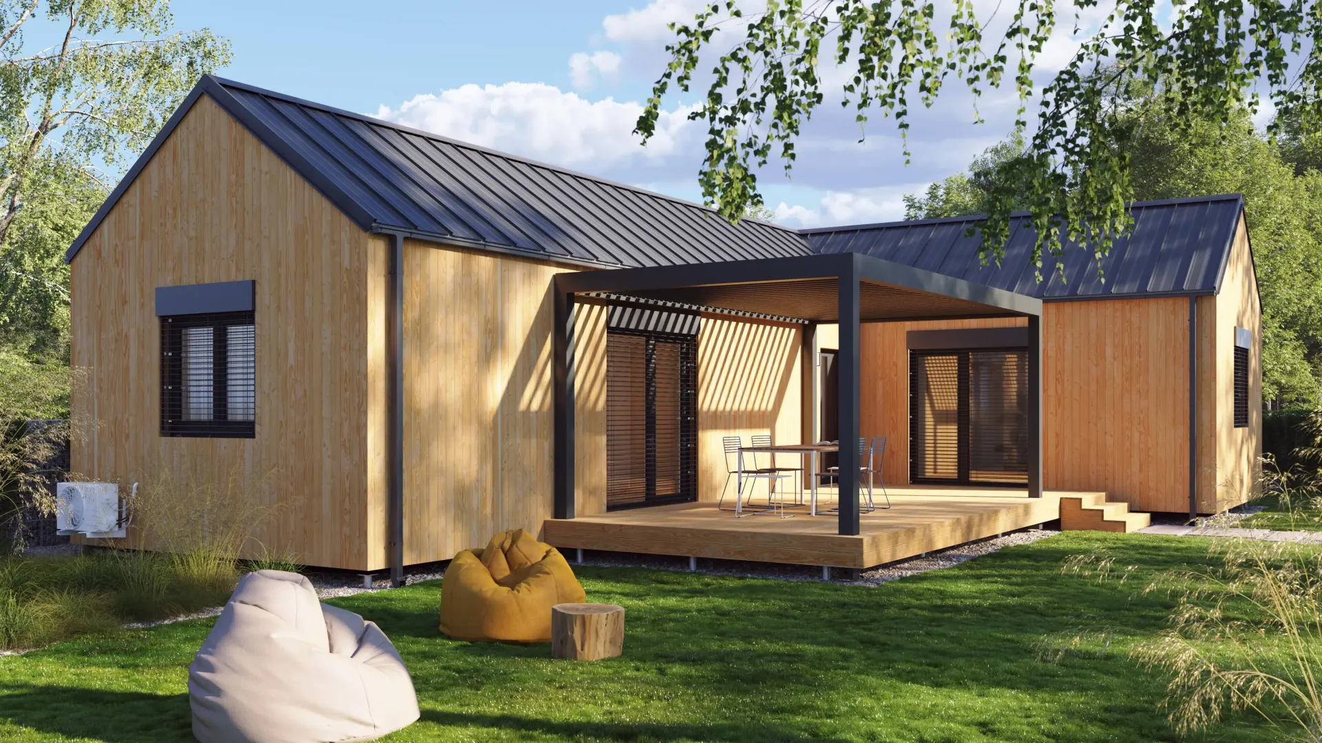 Zweimodulige L Holzfassade 94 m²-Satteldach