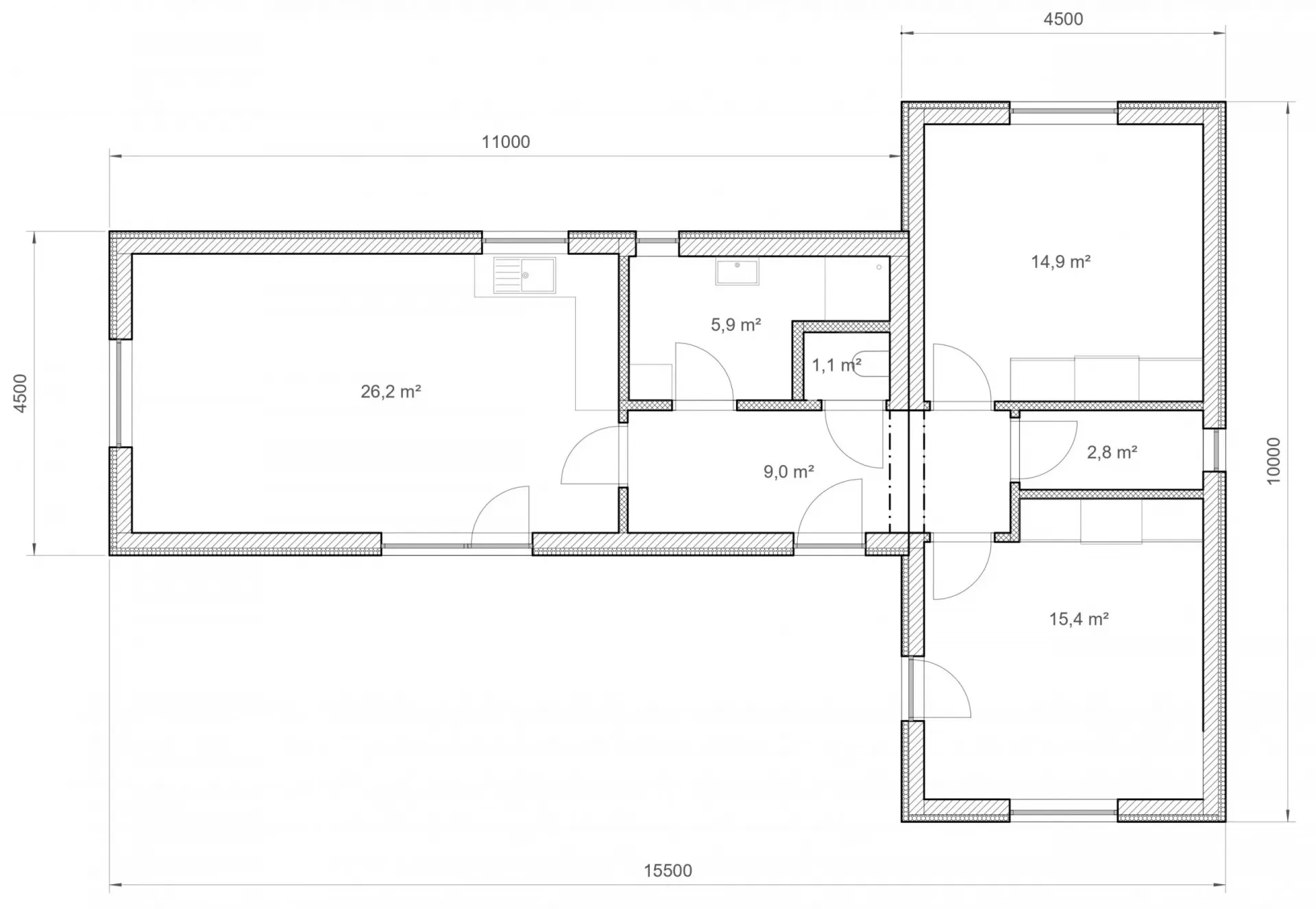 Zweimodulige T Holzfassade 94 m²-Flachdach